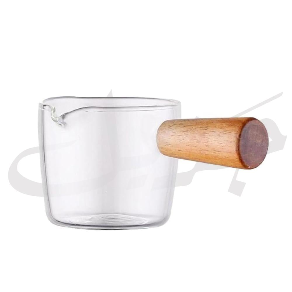 كوب زجاجي صغير بمقبض خشبي – لمسة كلاسيكية بأناقة مصغّرة