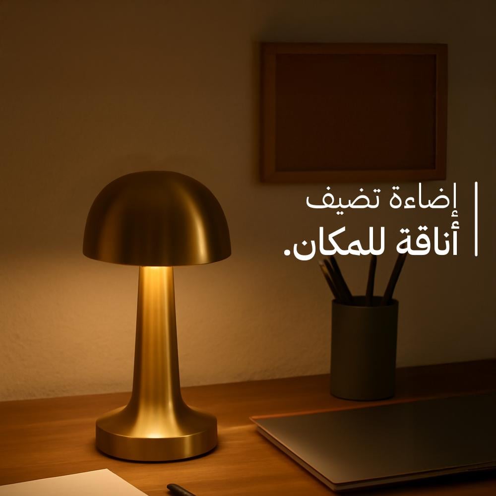 ✨ مصباح طاولة ذهبي مودرن – شكل فطر أنيق يضيء أناقتك 🍄💡